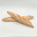 A long, thin French loaf known for its crisp, golden crust and soft, airy interior. Traditionally made from simple ingredients—flour, water, yeast, and salt—it’s a staple and enjoyed fresh daily.